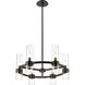 Take a minimalist approach to lighting a custom space, starting with the sophisticated design of this matte black iron and glass six-light chandelier. Perfect for a small- to mid-sized contemporary dining room, kitchen, or hallway, the Datus chandelier delivers drama with a round frame crafted of bold matte black finish steel, dressed up with delicate clear glass cylinder shades.